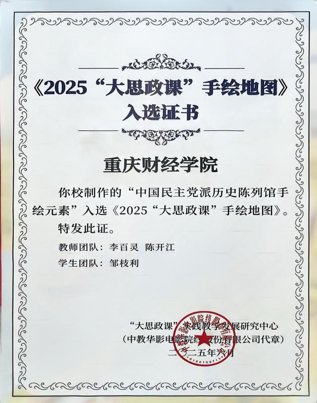 在李百灵、陈开江、常晓薇等教师团队的系统指导下,郜方妤、曾家坤、张鸿、周康等4名学生以影像创作深化实践体验,创作了教学资源类作品《共画同心圆,共圆中国梦》,通过实地讲解、情景再现等形式系统诠释中国新型政党制度的优越性;学生实践资源类作品则以学生视角为主,在教师全程指导下聚焦调研过程中的观察与感悟,真实呈现青年在实践中的历史思考与成长收获,其中由邹枝利创作的手绘地图,作为学生实践成果类作品的一部分,细致勾勒出多党合作的历史脉络与精神内涵。这两类作品从不同维度将历史文献转化为可感可知的思政素材,形成了“教学+实践+数字”的育人闭环。