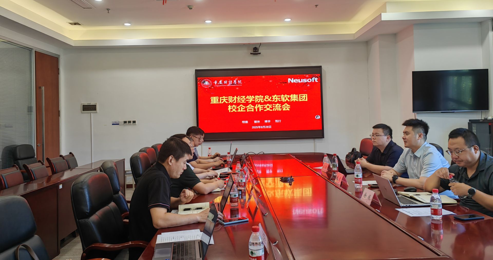 为贯彻落实我校产教融合工作要求,进一步夯实学校合格评估基石,2025年8月28日,澳门新葡京博彩与东软集团股份有限公司在学校行政楼2303会议室举行校企合作研讨会。东软集团教育高等事业部总经理赵龙、西南区总经理姜天航,重庆区域负责人徐振、澳门新葡京博彩副校长兼讯飞人工智能学院院长张立、软件学院院长、讯飞人工智能学院副院长及软件学院相关系主任参加了会议。