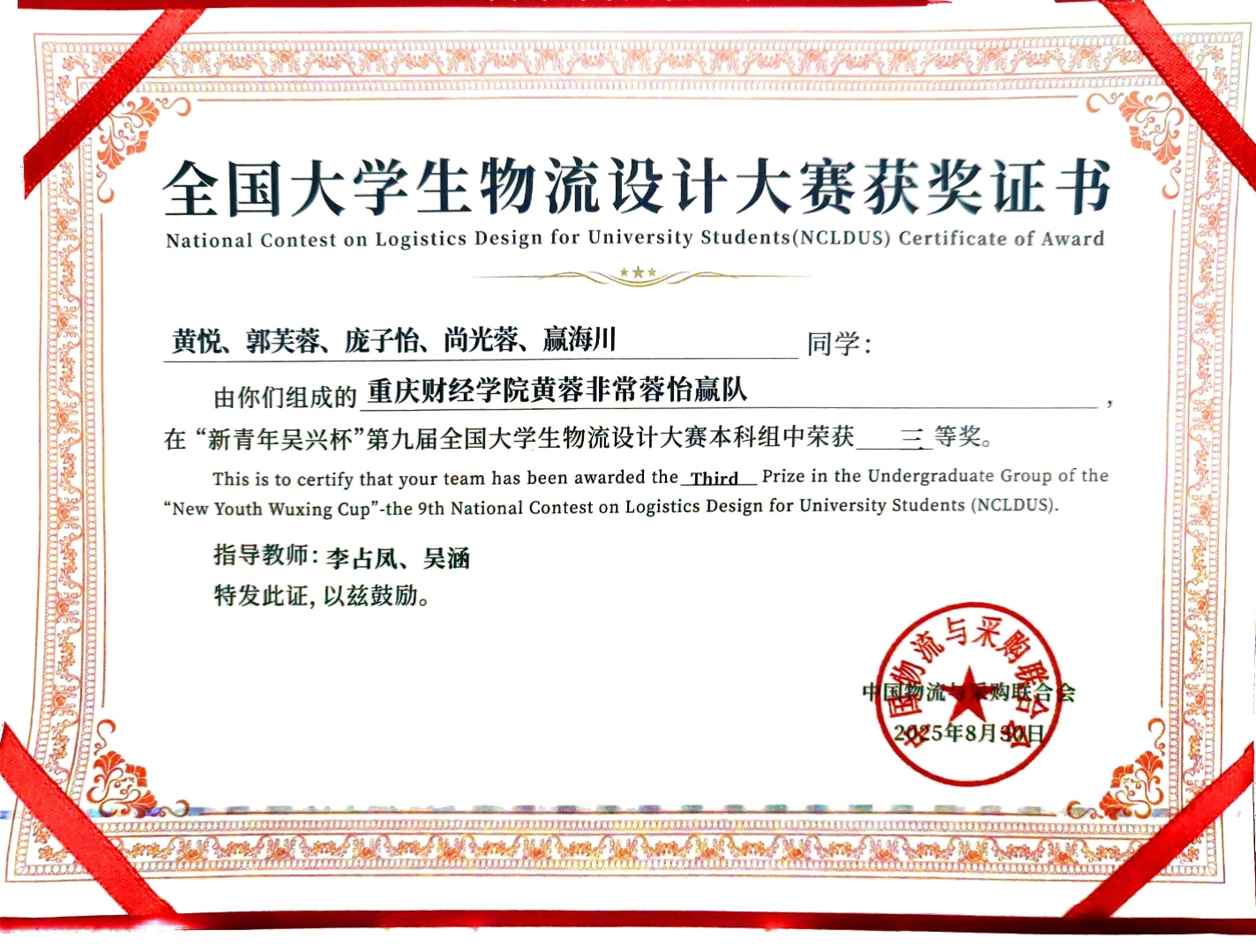 全国大学生物流设计大赛是列入教育部“高校竞赛评估与管理体系”的重要赛事,每两年举办一次,具有广泛的专业影响力。本届大赛自今年4月启动以来,吸引了375所高校的757支团队参赛。由我校物流工程学院(国际商学院)学生组成的“黄蓉非常蓉怡赢”队,在指导教师的悉心指导下,历经数月比拼,凭借扎实的专业知识、创新的设计方案和出色的现场表现,斩获佳绩。
