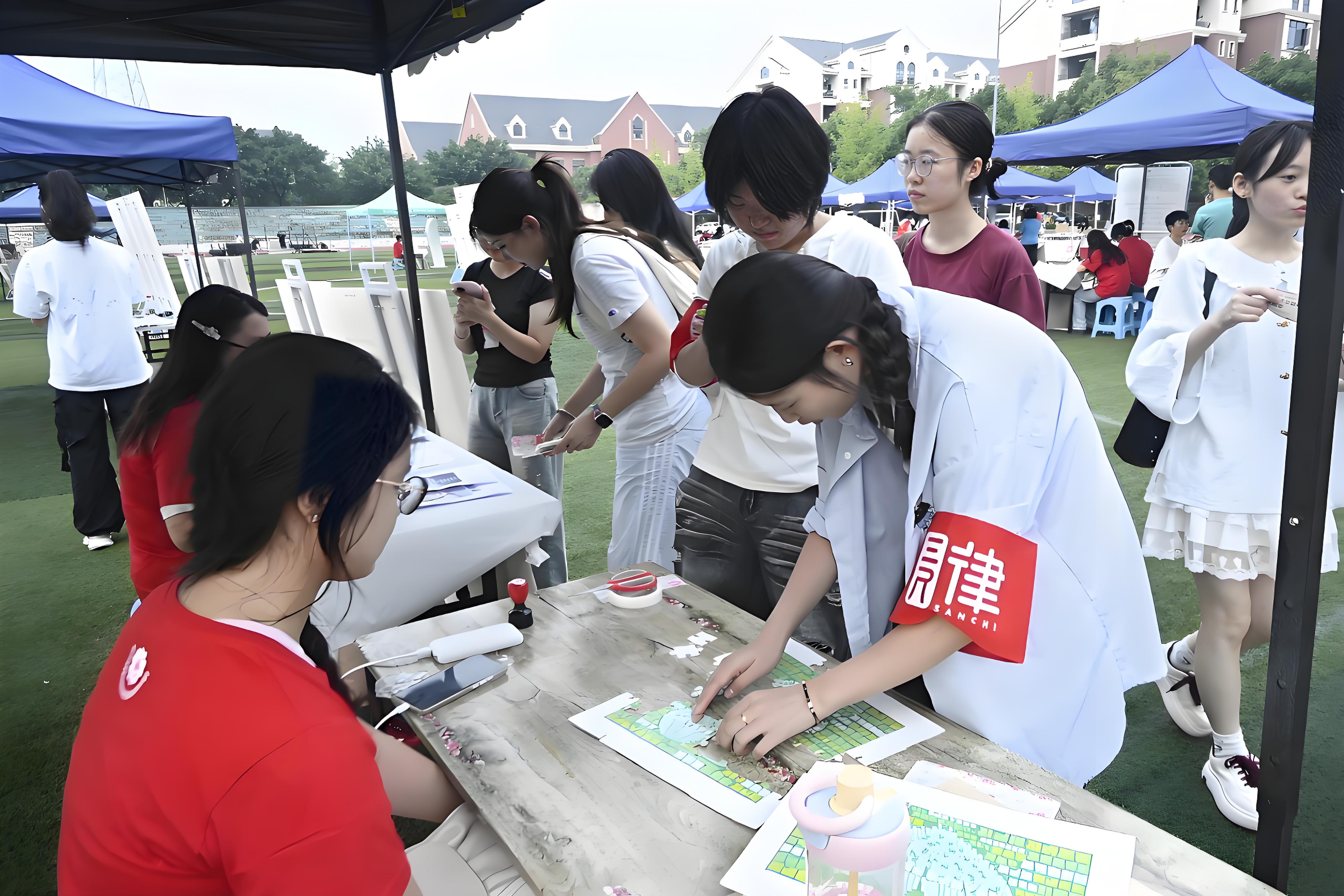 本次活动以“公益向善,坪聚爱心”为主题,不仅是石坪桥街道“虹桥公益节”的重要分会场,也是我校与地方政府深化校政合作的全新尝试。活动现场设置公益科普区、爱心义卖区和爱心练摊区,在宣传公益知识的同时倡导参与爱心义卖,凝聚社会责任。十余个公益主题科普摊位涵盖法治教育、环保行动、助老服务、反诈宣传等多元内容。师生们通过集章打卡、游戏闯关、爱心捐赠等方式,在互动中学习公益知识,感悟社会责任。