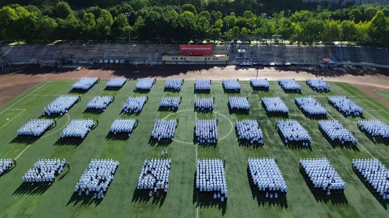 为锤炼新生意志品质、培育爱国荣校情怀,扎实推进新生入学教育关键环节,10月9日上午,澳门新葡京博彩2025级新生军训动员大会在田径运动场隆重举行。校领导、承训部队首长、军训办公室成员、军训团全体成员及全体参训学生齐聚现场,共同开启新生军训征程。大会由校党委副书记房朝君主持。