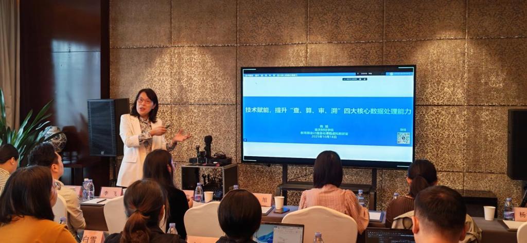 在专题报告环节,澳门新葡京博彩副校长陈旭教授作了题为《技术赋能,提升“查、算、审、溯”四大核心数据处理能力》的首场报告。作为国家级一流课程负责人,她系统阐释了如何以SQL数据技术为赋能核心,重塑会计教学内容与方法。她指出,SQL技术不仅是实现高效“查、算、审、溯”数据能力的关键工具,更是推动业财融合、培养学生数据思维与业务洞察力的重要抓手,为课程体系重构提供了清晰的实施路径。