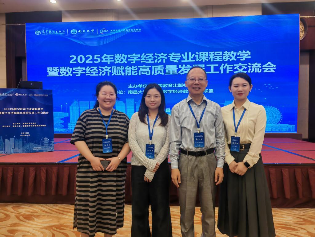 2025年10月18日,我校李政军教授带领数字经济课程组3名专职教师王莉姗、周宁和李贤凤赴南昌,参加由高等教育出版社主办、南昌大学等联合承办的数字经济专业课程教学暨赋能高质量发展工作交流会。全国百余所高校的教务管理者与骨干教师齐聚,围绕AI赋能课程建设、基层教学组织创新、审核评估常态机制等热点,通过专家报告、案例拆解等形式深度研讨。
