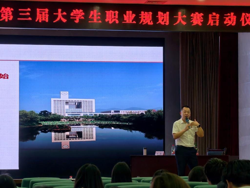 10 月 24 日下午,我校“个个有赛道 人人能出彩”第三届大学生职业规划大赛启动仪式在学术报告厅隆重举行。校长吴华安教授出席并讲话,副校长李春雷、副校长崔中山、教务处处长李红平、二级学院院长、书记以及全校师生代表共300余人参加启动仪式,会议由通识教育学院党总支副书记夏文瑞主持。