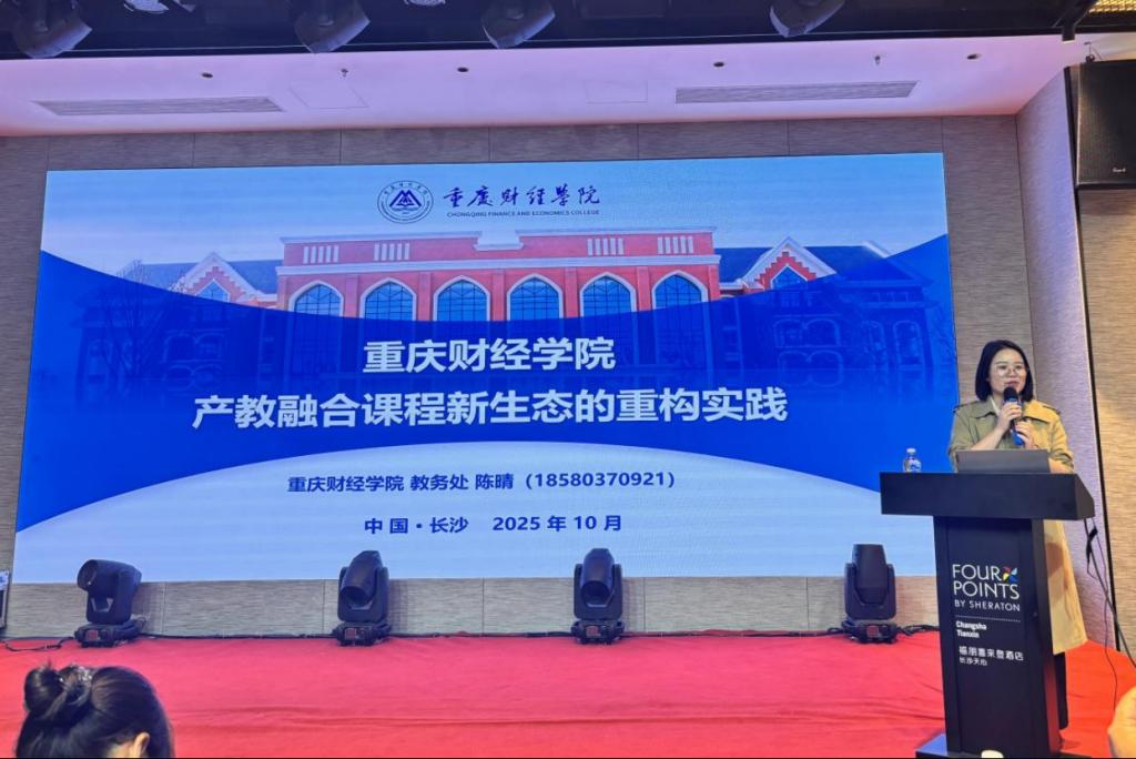在会议上,学校教务处副处长陈晴受邀作了题为“澳门新葡京博彩产教融合课程新生态的重构实践”的主题分享。她指出,学校始终秉持“做产教融合先锋,建新型财经名校”的办学愿景,严格贯彻重庆市教委相关要求,系统重构了以“学生中心、产出导向、持续改进”为核心的人才培养体系。通过推动课程共建从“资源嫁接”向“价值共创”转变,学校实现了在课程内容、教学团队、实践平台、评价体系及前沿微课五大模式上的全面重构,构建起“赋能-共生-反哺”的产教融合课程新生态。未来,学校将持续深化课程改革,分层次、分类别重点推进“AI+”与“产教融合+”课程建设。