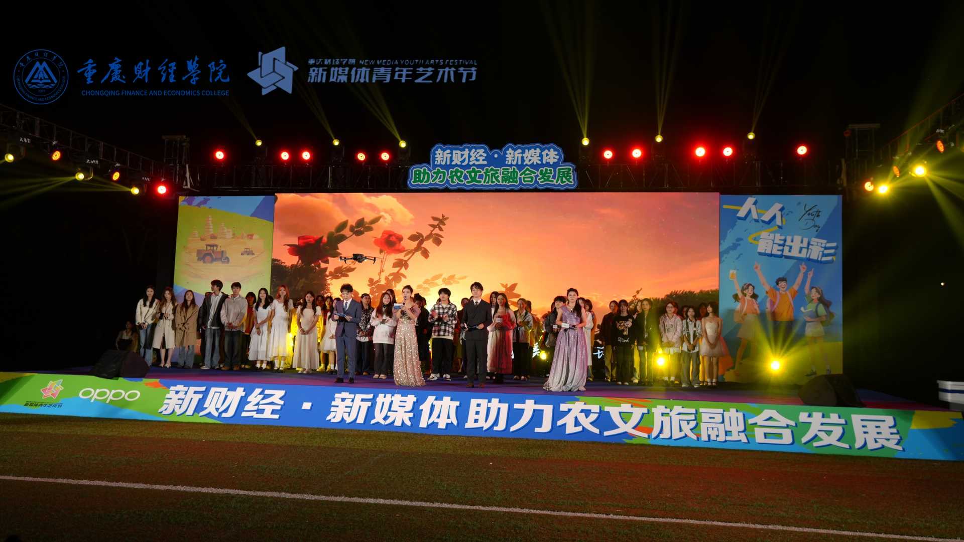 从开幕式上政企校研多方联动的热烈氛围,到直播间里农文旅产品的火爆推介;从主题晚会中专业与实践结合的精彩演出,到未来两天丰富多元的活动安排——本届新媒体青年艺术节不仅是一场文化与创意的盛宴,更是学校深化产教融合、服务乡村振兴的扎实行动。