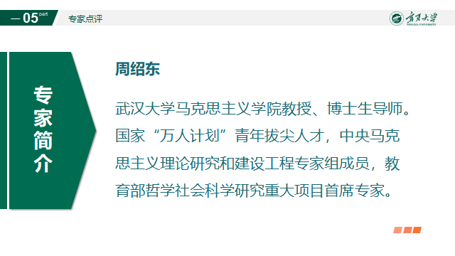 在专家点评阶段,武汉大学马克思主义学院周绍东教授对教学内容进行了专业指导。他强调,政治经济学教学须保持理论逻辑的严密性,案例引入的时机与方式应服务于教学目标,避免因过早使用复杂案例而影响学生对核心概念的理解。他指出,在讲解货币流通规律时,应结合公式与定量分析,引导学生在推导与计算中把握货币职能与流通规律之间的内在联系。周教授还建议教师充分利用课堂案例与现实数据,帮助学生构建从理论到实践的完整认知体系,从而增强课堂教学的分析性与实效性。
