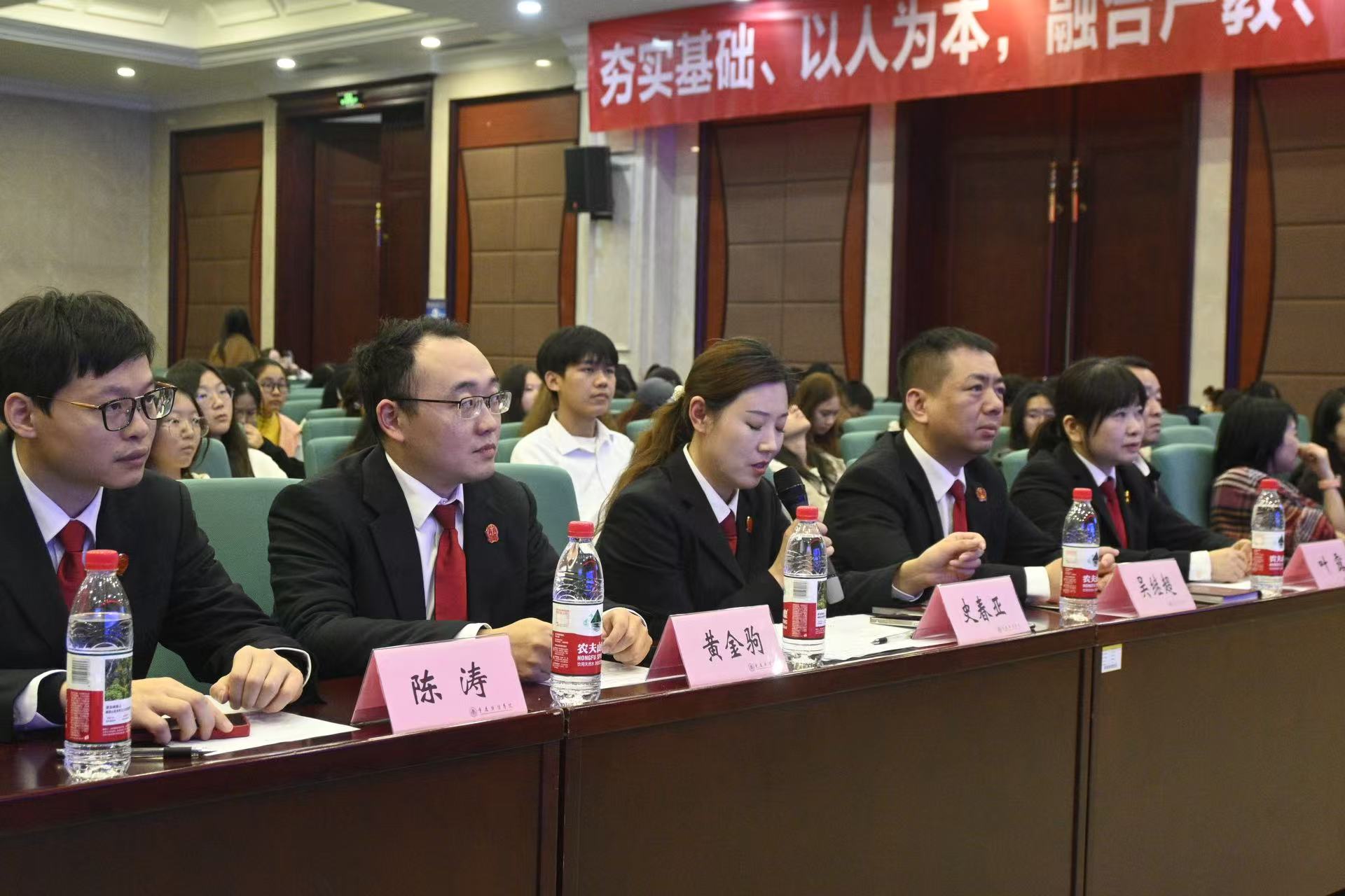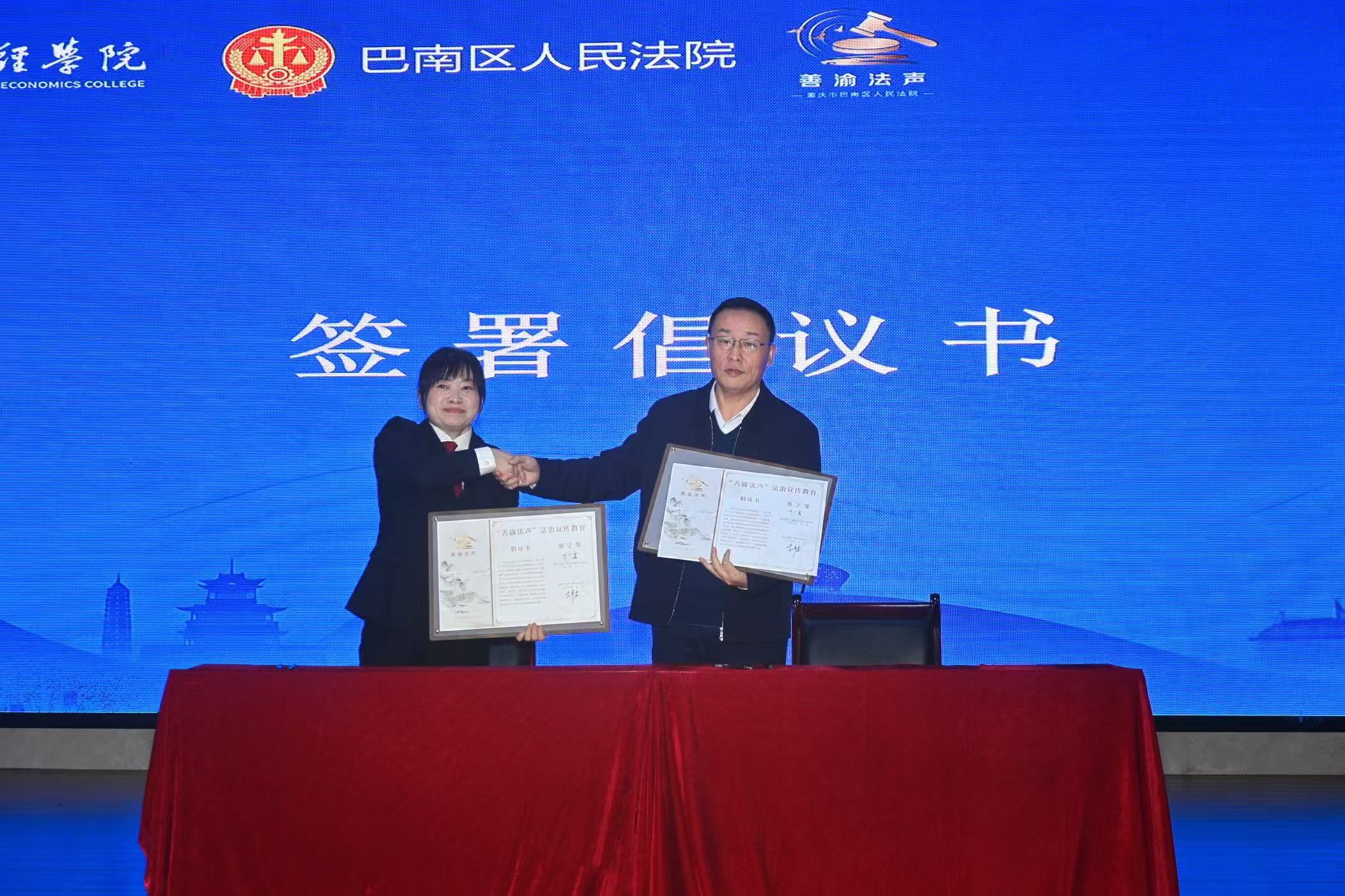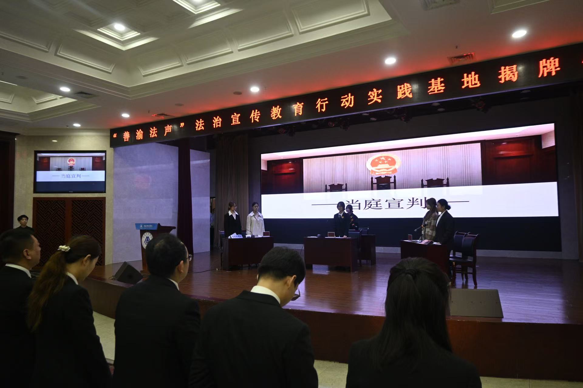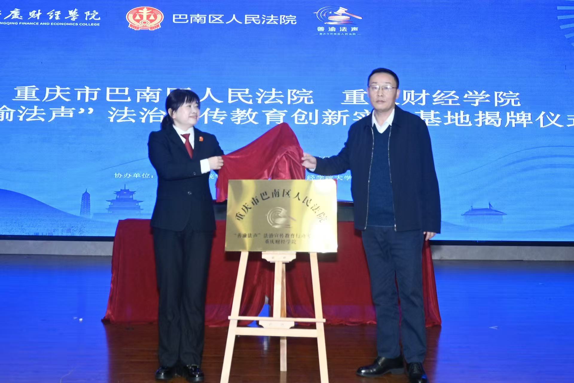 为深入贯彻落实新时代法治育人理念,推动院校协同实践育人、专创融合迈入新阶段,2025年11月7日,我校与重庆市巴南区人民法院共建的“善渝法声”法治宣传教育实践基地揭牌仪式暨模拟庭审活动在我校学术报告厅隆重举行。巴南区人民法院党组成员、政治部主任叶露,团委书记、执行局副局长黄金驹,民一庭负责人史春亚,立案庭负责人吴继超,"善渝法声"行动负责人陈涛及领导小组庞钦引;我校党委委员、副校长李春雷,通识教育学院院长黄兰、党总支副书记夏文瑞,团委书记刘艳娇,双创中心主任莫紫霄,法治办公室主任刘志航等出席活动。