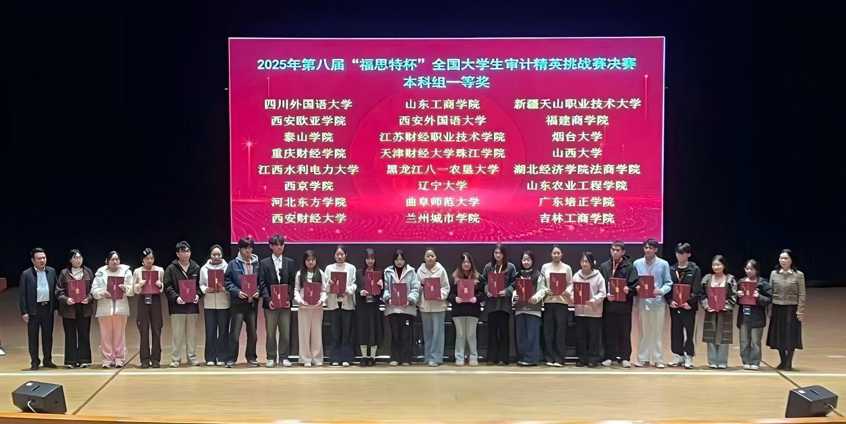 近日,2025年第八届“福思特杯”全国大学生审计精英挑战赛全国总决赛圆满落幕。我校会计学院指导老师魏泽蜀,学生张灵、张媛曦、周欣淋组成的参赛团队,凭借扎实的专业功底、出色的实操能力和默契的团队协作,从全国366所高校的参赛队伍中脱颖而出,最终斩获本科组全国一等奖,再次为学校赢得国家级赛事殊荣。