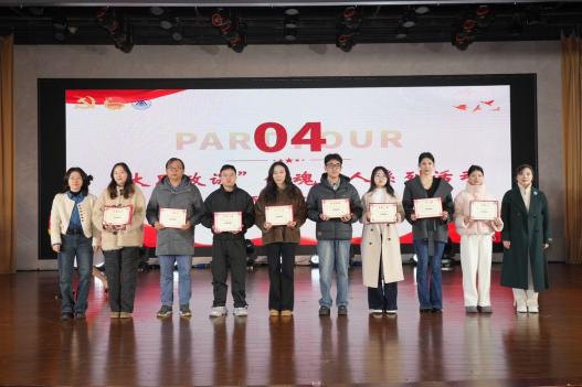 视频播放结束后,主持人宣读了系列活动获奖名单。在“追忆峥嵘抗战史 传承不朽爱国魂”大学生讲思政课比赛、“光影述说红色故事青春践行使命担当”微视频解说比赛,以及“烽火辉光映史册 红心壮志启新魂”大学生德育成果展演(含红色情景剧、红色漫画、红色音乐、优秀实践作业成果评选)中,共有数十名个人及团队分别斩获一、二、三等奖及优秀奖,同时涌现出一批优秀指导老师,与会嘉宾为获奖代表及教师颁发荣誉证书及奖品,台下掌声雷动,既是对获奖者的肯定与祝贺,更是对全体学子传承红色精神、勇担时代使命的激励与期许。