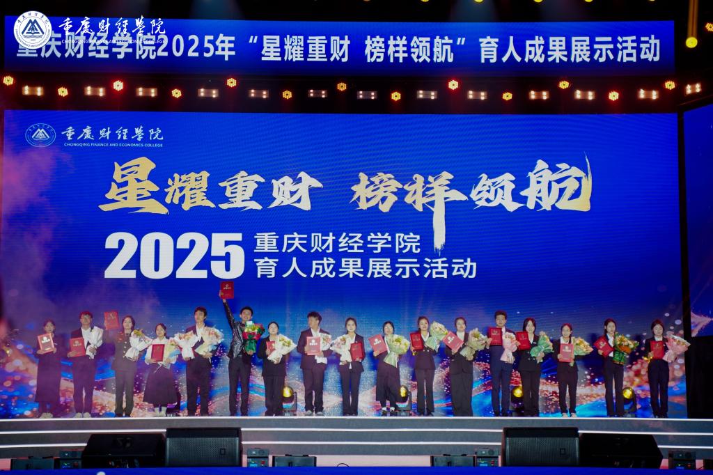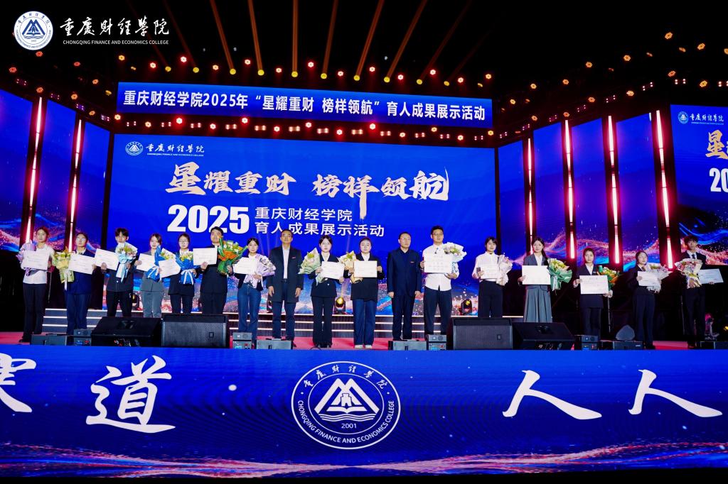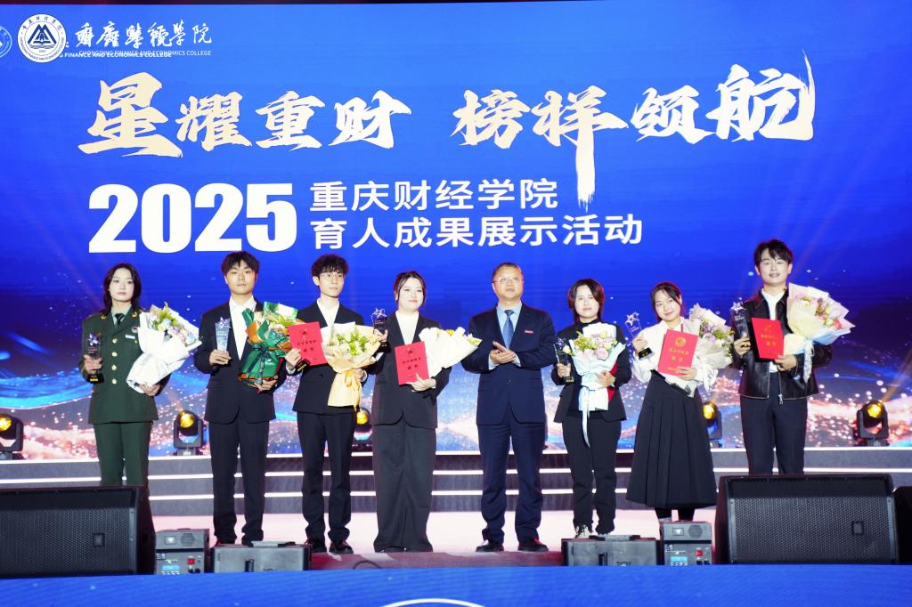 校长荣誉奖颁奖环节,6名获奖者及1名提名奖获得者依次登场,成为“个个有赛道,人人能出彩”育人理念的鲜活注脚:物流工程学院(国际商学院)沈博真斩获市级金奖,田贵金逆境中坚守自强;金融学院“金融科技研习室”团队从全国千余所高校的5000余件作品中突围,斩获全国特等奖;公共管理学院陈宏成为民办高校唯一的“挑战杯”特等奖得主;新媒体艺术学院“理响”九大队系列视频全网浏览量破4000万、登顶全国榜单,李航的宣讲覆盖重庆80所高校、服务超37万人;会计学院黎梦琳退伍不褪色,化身校园“国防榜样”。校长吴华安为获奖者颁奖,现场掌声雷动,致敬这份青春坚守与拼搏。