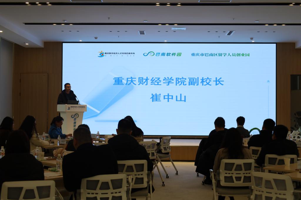 1月21日下午,2025年重庆数字经济人才市场巴南市场工作总结暨《创业金融》课程发布活动在巴南软件园举行。作为活动的核心承办方与学术引领者,我校在现场全面展示了产教融合的“重财方案”,并发布了融合AI前沿技术的《创业金融》开放式课程。