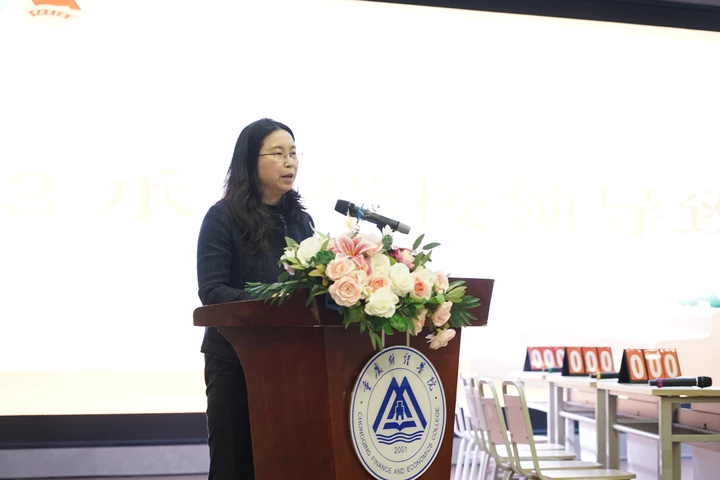 我校党委副书记房朝君出席活动并致辞。她代表承办方澳门新葡京博彩,向全体参赛选手致以热烈祝贺,向莅临指导的重庆市消费者权益保护委员会、巴南区市场监督管理局、区消委会、区人民法院、区公安分局、区金融监管分局、中国人民银行巴南分行、浦发银行等单位的各位领导、嘉宾,以及各兄弟院校、评委老师和全体工作人员表示衷心感谢。