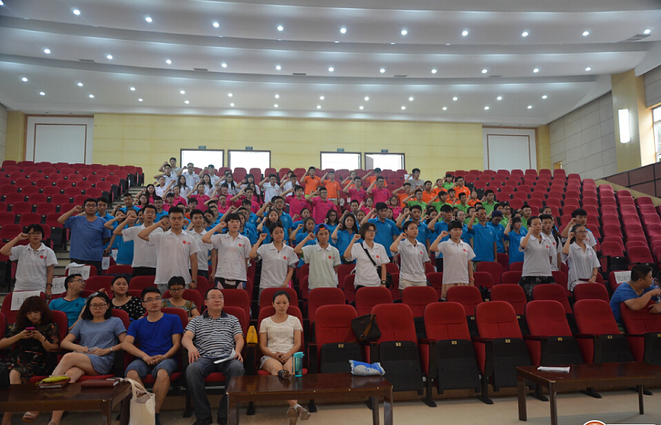 嘹亮的团歌之后,张斌老师作为指导教师代表进行了发言。他对同学们提出了三点建议:一、努力实践,不断创新,奉献自己的青春和力量。二、虚心向群众学习,向群众咨询问题并解决问题。三、注重安全问题,头脑中形成安全意识。随后,陈果同学作为本次三下乡学生代表进行了发言,她认为社会实践是大学生的第二课堂,并表明作为三下乡成员代表会积极参与社会实践活动,为建设社会主义新农村做出贡献,并带领全体三下乡成员进行了宣誓。最后,党委副书记陈龙国针对本次“三下乡”活动进行了总结发言,他对在座成员们提出了几点要求和希望。指出大家需明确志愿者的角色和定位,做好自己分内的事,积极为团体办事出力。并珍惜此次学习实践的机会,广泛了解社情民意,学习党的方针政策,在外树立我院学子的良好形象,扩大我院的影响力。至此,2015年暑期“三下乡”出征仪式顺利举行。