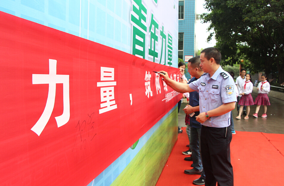 活动伊始,雷校长上台发表致辞。她表示目前中小学生网络安全教育是学生安全教育的重要内容之一,互联网影响和塑造着青年,青年也影响和塑造着互联网,二者相辅相成。作为一个合格的青少年我们要做到文明上网,传播美好,共建和谐校园。随后,在我院团委副书记李刚老师的倡议下,校方师生代表以及到场嘉宾依次在宣示墙上签字。“守护·天使”志愿者也用话剧的形式形象地告诉小学生们如何正确上网。