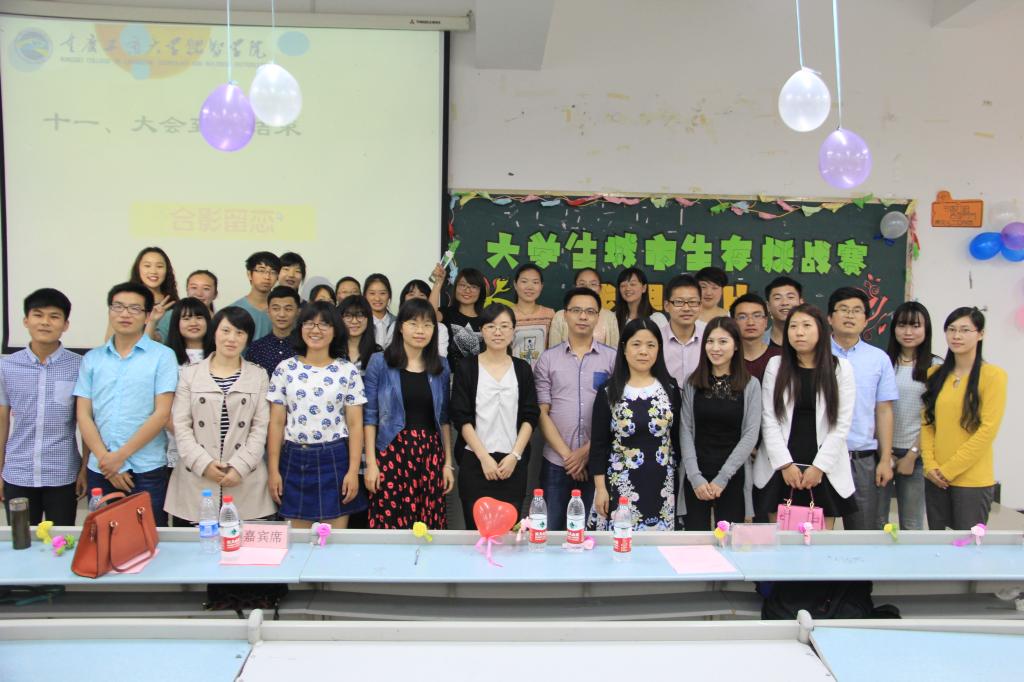 (学生记者 焦堃 李肖潇)为了更好的响应国家素质教育的号召,锻炼我院大学生的社会生存能力,同时让更多的大学生更快、更好的融入社会。重庆工商大学融智学院大学生自我管理与服务委员会(以下简称大自委)于2015年4月6日—21日举办第二届大学生城市生存挑战赛。本次城市生存挑战赛共有十八个小组近一百人参加。