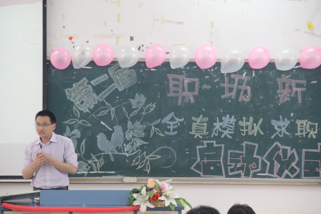 (金融系记者:李婧杰 朱琳)用行动实现梦想,用梦想浇灌未来。第二届“职场新锐”全真模拟求职大赛启动仪式于2015年4月21日中午12:00在10403教室成功举行。参加本次仪式的嘉宾有:团委副书记李刚,经济系党总支副书记李红平,经济系学团办副主任肖婵,金融系学团办主任于成江,金融系专职辅导员梁建良以及院、系、新闻中心、大自委、党服、社联、艺术团主席团等。