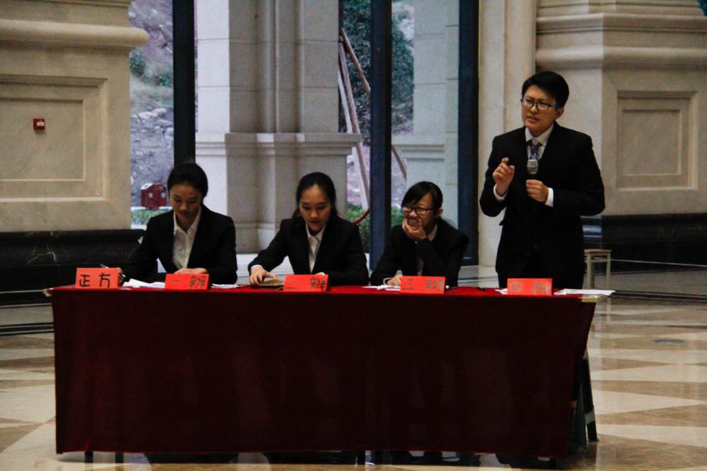 (通讯员 丁兰心 王宇辰)赛场如战场,如簧巧舌见真章;辩论如博弈,悬河之口论技巧。我院第十届“思在杯”新生辩论赛观摩赛于2015年11月12日17:40在教学楼二楼大厅成功举办。出席本次辩论赛的嘉宾有商务系学团办副主任张斌、团委副书记李刚。担任评委的是原团委干事马凌凤及辩论队队长戴雯汐。