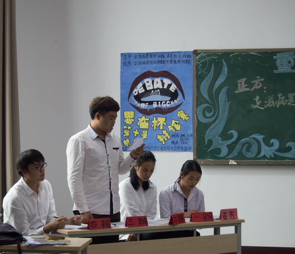 本次辩论赛正方来自信息工程系,反方来自商务系。继正反方独特个性的自我介绍后,双方就“艾滋病是医学问题还是社会问题”这一辩题展开辩论,正方一辩从艾滋病的本质,以及哥白尼的日心说来论证了“艾滋病是医学问题不是社会问题”这一观点。反方则从艾滋病的传播途径来源于不正当的社会行为论证了“艾滋病是社会问题不是医学问题”的观点。在随后的质询环节中,双方更是针锋相对,步步紧逼,现场气氛迅速升温,精彩不断,场下更是掌声不断。最为期待的自由辩论环节紧随其后,正方围绕社会影响不等于社会问题进行陈述,反方则从医疗参与不是医学问题进行反驳,比赛一度进入白热化阶段。最终反方凭借自己独具一格的观点以及绝对的优势取得了本次比赛的胜利。