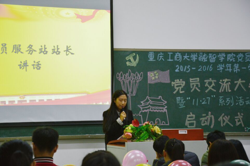(通讯员 康敏)2015年11月18日中午12点30分在学院1320教室举行了党员交流大会暨“11.27”系列活动启动仪式。商务系党支部书记张斌、经济系党支部书记夏文瑞、管理工程系党支部书记王玲艳、党员服务站指导老师钟定华、会计系组织委员游登贵作为嘉宾出席本次大会。