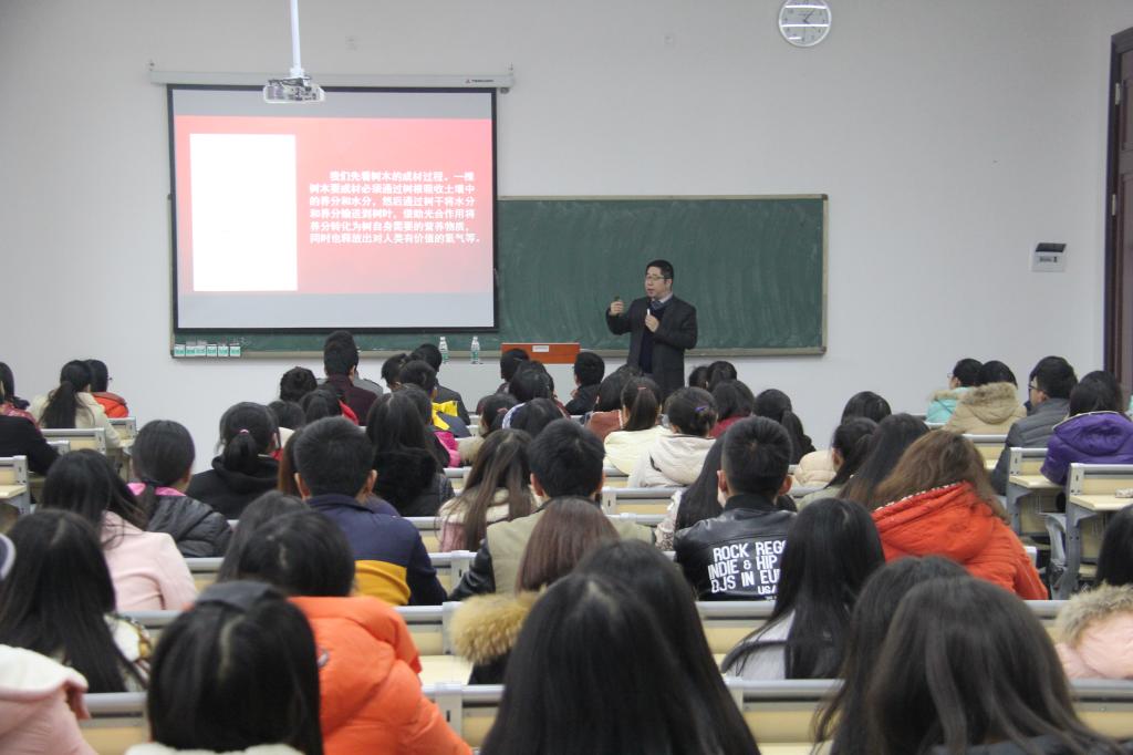 讲座上,孟东方教授首先讲解树的成长:树根、树干、果实、光合作用过程。并提出人如同树,在大学生成长成才的过程中和树一样,不仅要靠自己努力,还与外界的条件息息相关。他指出,在大学生的学习中老师是非常关键的,一个好的老师能带给学生几种层次的境界,从传统的“教学”层面升华到创新型的“学教”境界。同时,孟教授用生动的语言讲述了世界各国大学生的学习方式,并提出了适合中国大学生的多种学习方式,让同学们在今后的学习过程中选择适合自己的方法来学习。最后,孟教授告诫同学们要构建自己的思维,形成与时俱进的“辩证、务实、适应”的思维方式,让思维更远、更宽、更新、更快。