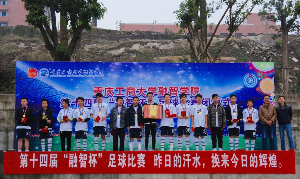赛后,在操场上举行了第十四届“融智杯”足球赛的闭幕式暨颁奖仪式。嘉宾们分别为本次“融智杯”足球赛中取得优异成绩的队伍进行颁奖。至此,我院第十四届“融智杯”足球赛顺利落幕。然而比赛虽然落下帷幕,队员们的青春与激情却在赛场上继续奔跑着。