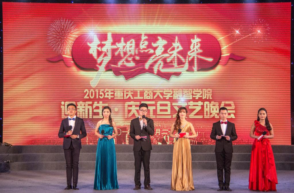 (学生记者:张晓琳 江佩琳)201512251900,我院以“梦想点亮未来”为主题的迎新生﹒庆元旦文艺晚会在教学楼二楼大厅隆重举办。莅临本次晚会的领导及嘉宾有:重庆职教城总公司执行董事、总经理谢成兴,新鸥鹏投资集团总裁张雪樵,新鸥鹏投资集团副总裁,融智学院董事长杜积西,巴南团区委副书记张琦,龙洲湾派出所副所长黄照辉,新鸥鹏教育集团专家委员会专家沈民及学院院领导等。