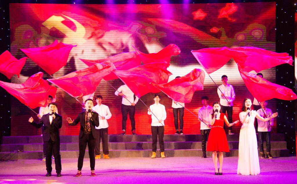 晚会共分为“致祖国”、“致青春”、“致梦想”三个篇章。一曲“春满校园”拉开了本场晚会的序幕。接下来,整个晚会精彩纷呈,高潮迭起,表演形式丰富,内容新颖。活泼的舞蹈《喜鹊喳喳喳》、动听的歌曲《唱支山歌给党听》、感人的舞蹈《中国妈妈》、诙谐的话剧《迎“新”》以及川剧表演《变脸》等为在场师生上演了一场视听视觉盛宴,无不表达出同学们对祖国的热爱、彰显着青春的风采、绽放着梦想的绮丽,令观众折服。其中,由B-Box协会和吉他社的同学们联袂打造的原创歌曲《南京1937》将现场气氛瞬间点燃,引得在场师生掌声、尖叫声不断。而由街舞社新老成员共同带来的现代舞《In The Name Of Father》也以其精彩的剧情和动感的舞姿让人拍手叫绝。穿插其中的互动抽奖环节更是将晚会推向了高潮,同学们积极参与,会场气氛热烈。