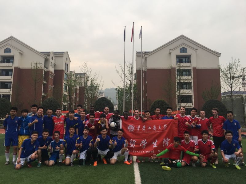 为促进校园英语及体育文化建设,我校基础课教学部与重庆工商大学国际交流合作处协商,特邀请了重庆工商大学留学生足球队来我校开展了足球友谊赛。