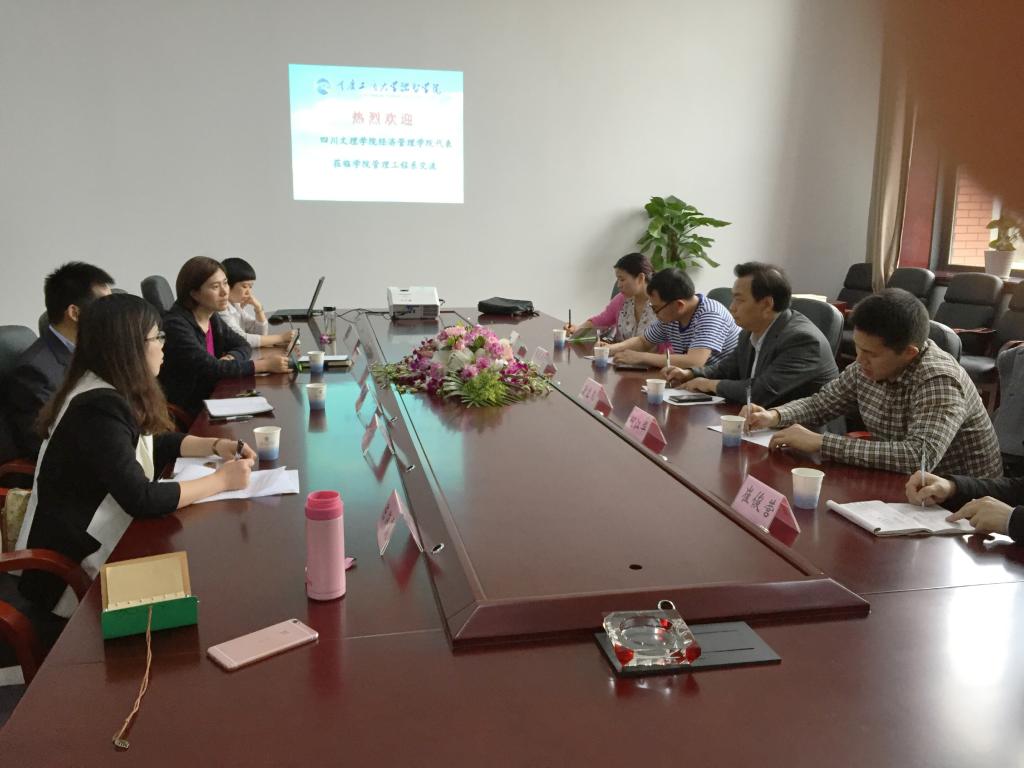 双方在座谈会中首先就各自学院物业管理专业的建设背景以及具体情况进行了介绍,包括办学规模、人才培养、实验室建设、实习基地建设、就业、招生、校企合作、师资、教材选择等情况进行交流。靳院长提出培养学生的整个过程中建立虚拟的物业管理公司,学生通过模拟真实物业管理公司的运营得到理论知识的应用和综合能力的培养,我院物业管理专业建设则专注于通过教学改革、校企合作、大学生科技创新项目等途径促使学生掌握专业知识以及培养学生综合能力。通过交流双方都表示目前社会对物业管理专业的认可度不高,但大家都对物业管理专业的发展前景充满信心。在座谈会中,靳院长也极力邀请我院教师前往四川文理学院参观交流。