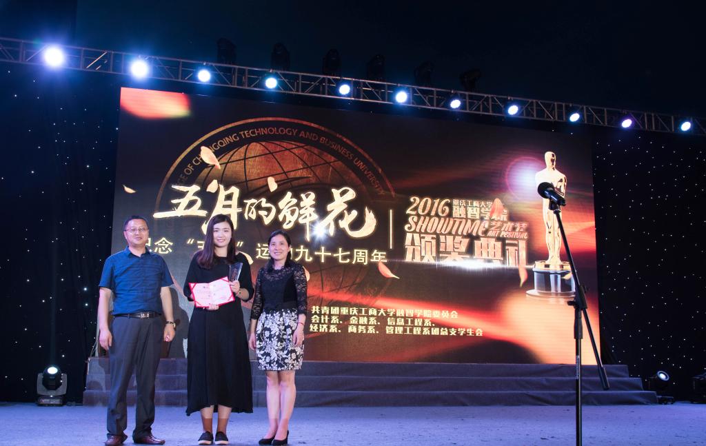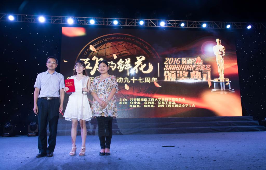 (通讯员 朱蒙蒙)点燃艺术激情,放飞青春梦想。2016年5月4日19:30,我院第七届“Show Time”艺术节颁奖典礼在足球场隆重举行。应邀出席本次颁奖典礼的嘉宾分别有:学院院长柏群、党委副书记陈龙国、副院长吴华安、院长助理兼学生处处长李果、党政办主任王晓云、财务处处长陈娅琳、学生处副处长姚转花、金融系党总支副书记唐川川、经济系党总支副书记李红平、信息工程系党总支副书记李喆、商务系学团办副主任张斌,会计系学团办主任李兰,经济系学团办副主任夏文瑞以及团委副书记李刚、团委老师刘艳娇。