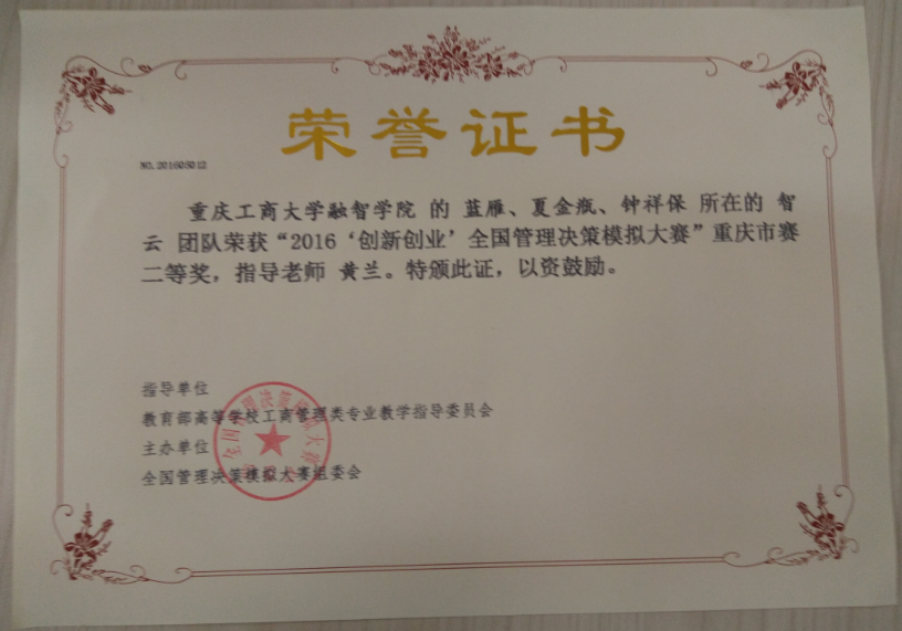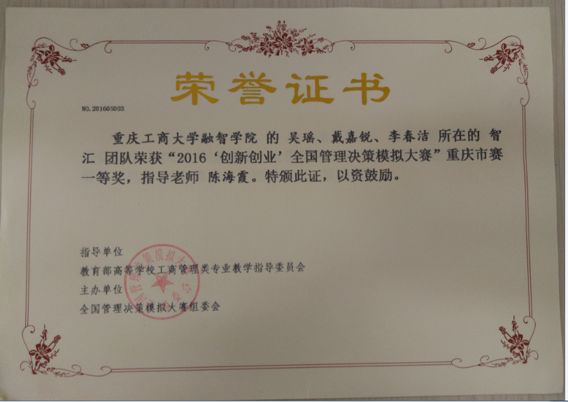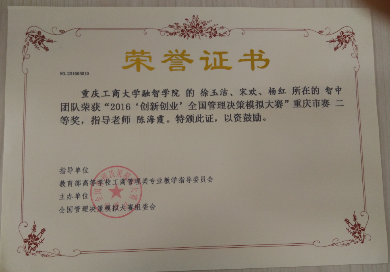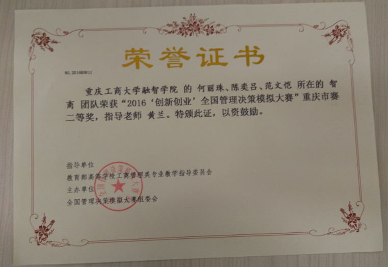 我院管理工程系创业学课程组在“2016全国管理决策模拟大赛”重庆市赛中取得优异成绩