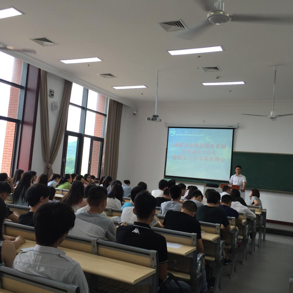 (通讯员 余天霞)2016年5月25日上午,成都万科物业重庆分公司应邀来到我院管理工程系招聘暑假实习生,管理工程系副主任姜文及物业管理教研室教师热情接待,2013、2014级物业管理专业、房地产经营与管理专业学生参加了此次招聘会。