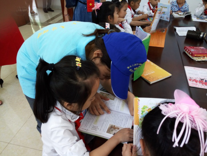25名志愿者各自分工,利用书法图画、科技、图书等方式分别对四个小组课堂进行普法知识教育。动量守恒小球、伯努利原理实验、无皮鼓等有趣的科普器材瞬间吸引了孩子们的眼球,在志愿者的带领下孩子们玩起科学小游戏,在玩耍的同时科学知识也深入到孩子们的脑海里;书画室里,在志愿者的帮助下,孩子们用自己的双手与想象力在白纸上开出了一朵朵粉色的中国水墨牡丹,苍白的画纸瞬间变成绚丽缤纷的具有魔术般魅力的画卷;一年级的孩子们很多字不认识,志愿者们就把书上的知识读给他们,把法治知识讲给他们,孩子们专注倾听的认真模样,仿佛进入了另一个知识的海洋,让旁人都不敢打扰。