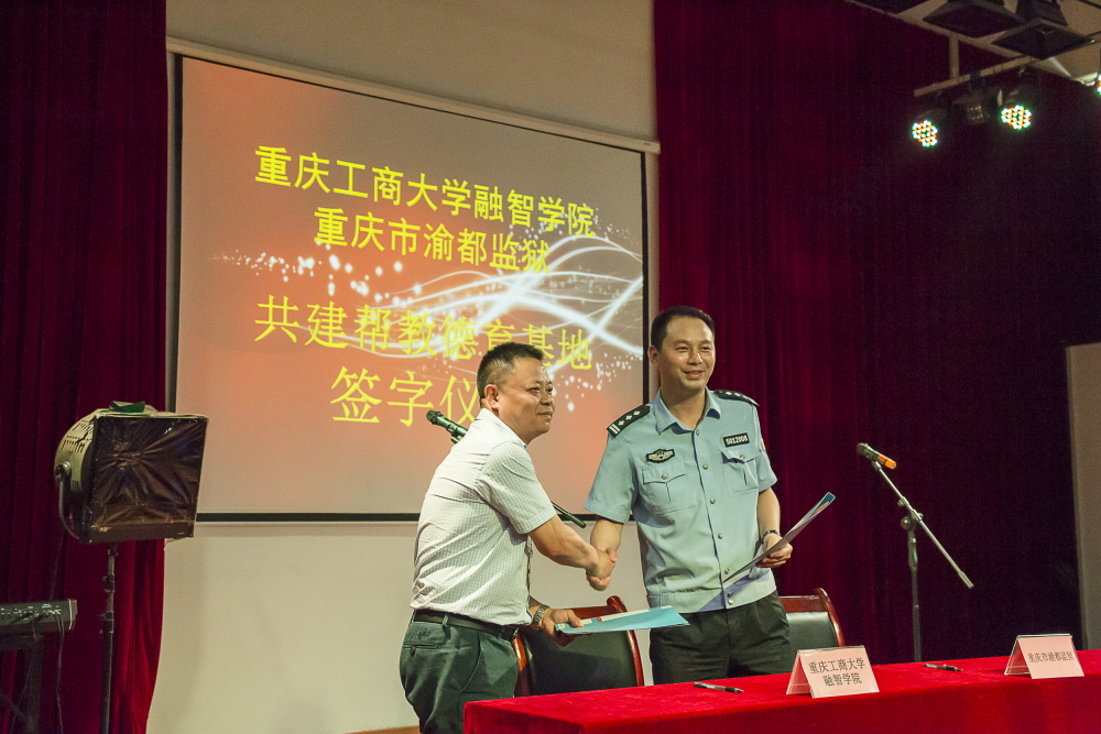 此次监狱参观活动首先参观了监狱服刑人员的生活区、食堂、宿舍等场所,了解服刑人员的日常生活环境;随后,听取了预防犯罪讲座和观看服刑人员展演,使大家深刻领悟到犯罪的后果和自由的珍贵;活动最后,重庆市渝都监狱与学院达成帮教共识,并由学院陈龙国副书记和重庆市渝都监狱副监狱长杜毅共同签署了《重庆工商大学融智学院与重庆市渝都监狱关于共建帮教德育基地合作协议书》。“帮教德育基地”的建立,对双方来讲,具有双赢的效果。监狱借助高校学科、专业、人才优势,可以加强对服刑罪犯的文化教育、职业技能教育、社会帮教及监区文化建设工作,做好罪犯教育、感化、挽救工作,推动监狱管理立体多维的社会化进程,提升教育改造质量;学校通过开展对学校领导干部、教职员工及学生的警示教育工作,可以进一步推动学校内部管理监督机制的健全和完善,最大限度地避免发生问题的风险和疏漏,及时发现和预防青少年犯罪和心理健康问题的发生,促进学校清正廉洁和青少年学生健康成长。在今后的合作中,双方将本着“互通有无、共建双赢”的原则,相互交流,取长补短,共同提高,促进资源共享,推动监狱、高校共同发展。