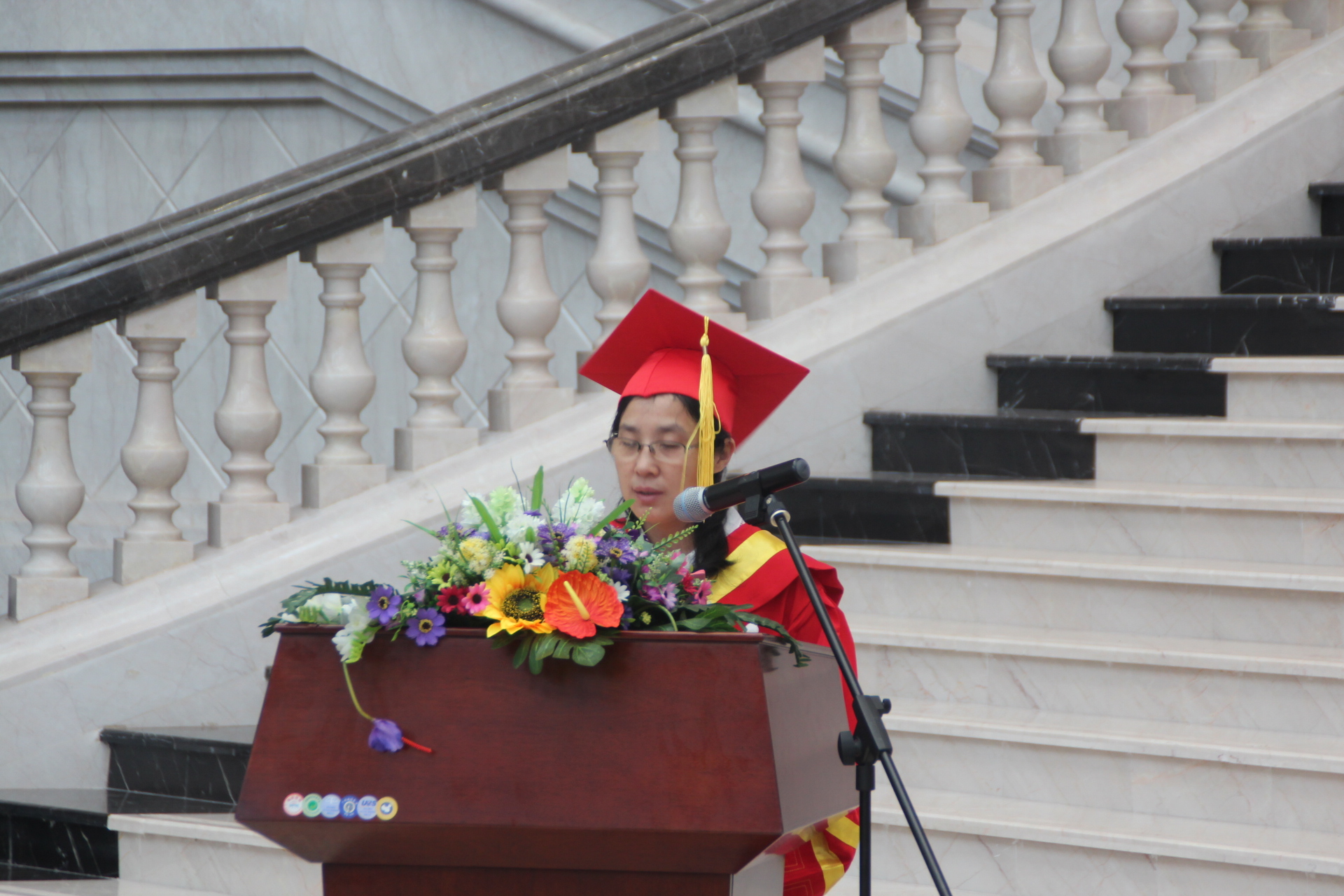 之后,毕业生代表——2012级工程管理专业唐婷,代表全体毕业生发言。唐婷同学在发言中,向培育自己的母校、关心同学们成长成才的院领导们和老师们表示了离别的不舍和衷心的感谢。接着,由教师代表——商务系彭子洋老师发言,彭老师也向毕业生们赠与了毕业的寄语、表达了对毕业学子们的祝贺和祝愿。
