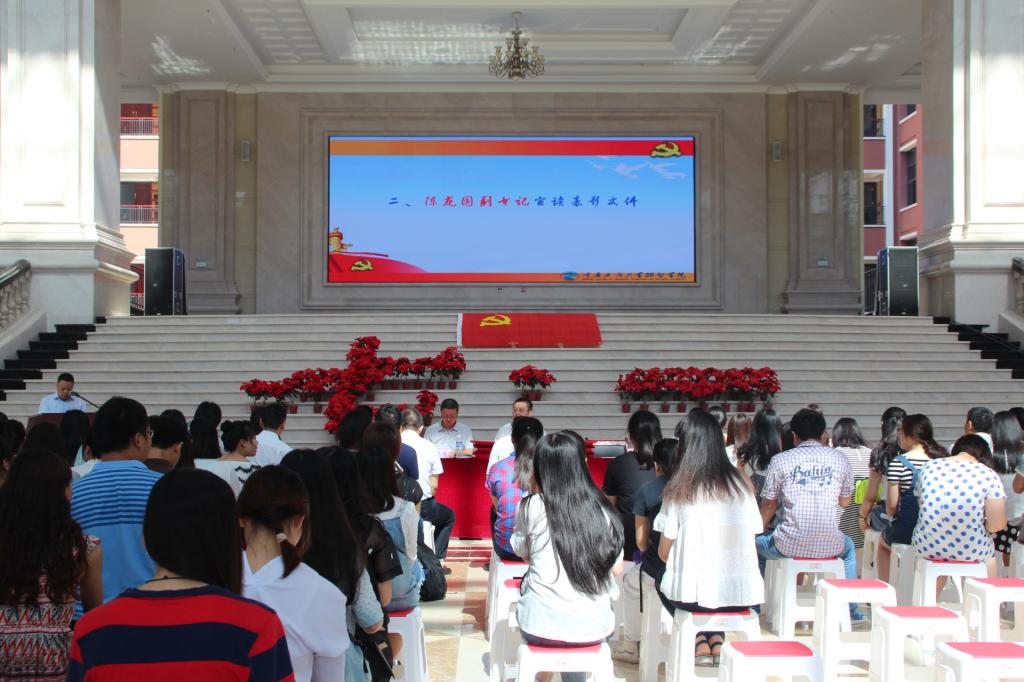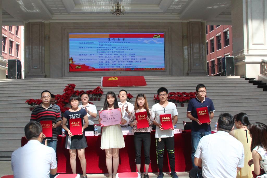 (通讯员 夏治禹)2016年6月17日,我院在教学楼大厅召开了庆祝中国共产党成立95周年大会,并表彰了一批在上一学年度组织工作中涌现出的先进组织和个人。学院党委丁广龙书记、陈龙国副书记、吴华安副院长、院长助理兼学生处处长李果、党政办王晓云主任、以及各党总支、党支部书记和全体教职工党员、学生党员同志出席了此次大会,此次大会由李果老师主持。