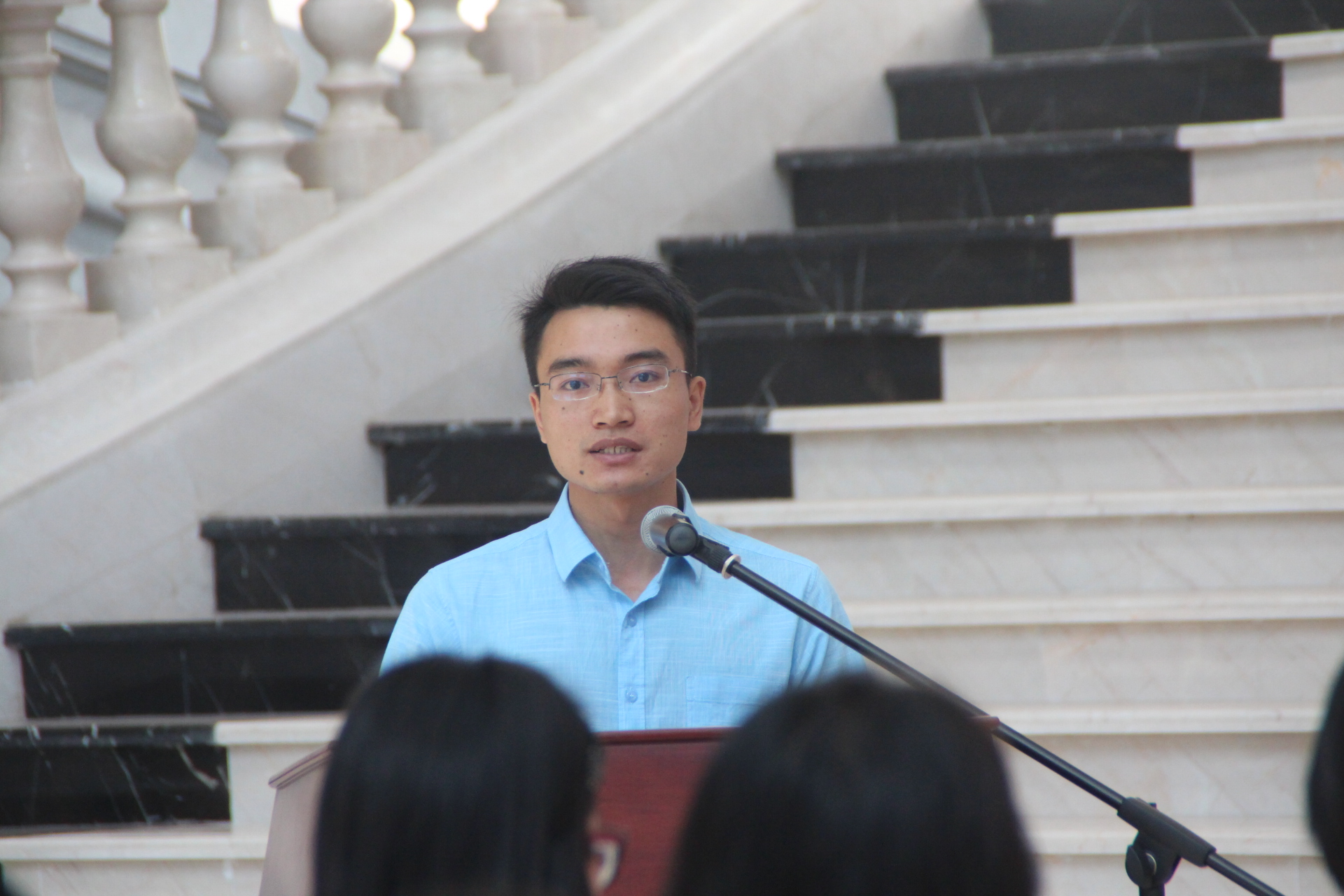 在庄严的国际歌中,此次大会正式拉开序幕。首先,陈龙国副书记宣读了关于表彰会计系党总支等6个党基层组织、李刚等33位优秀个人的文件,随即由出席大会都领导们现场为其进行了颁奖,并向他们表示祝贺。接着,先进基层党组织、优秀党务工作者代表游登贵同志、优秀教职工代表赵明慧同志、优秀学生党员代表宋成校同志先后进行了发言。他们在发言中无不表示祝贺党的95岁生日、并衷心感激党的辛勤培育,自己将坚定不移地跟随党的脚步、保持合格党员的品德。然后,全体新党员同志在党旗下进行了入党宣誓,老党员同志也同时重温了入党誓词。