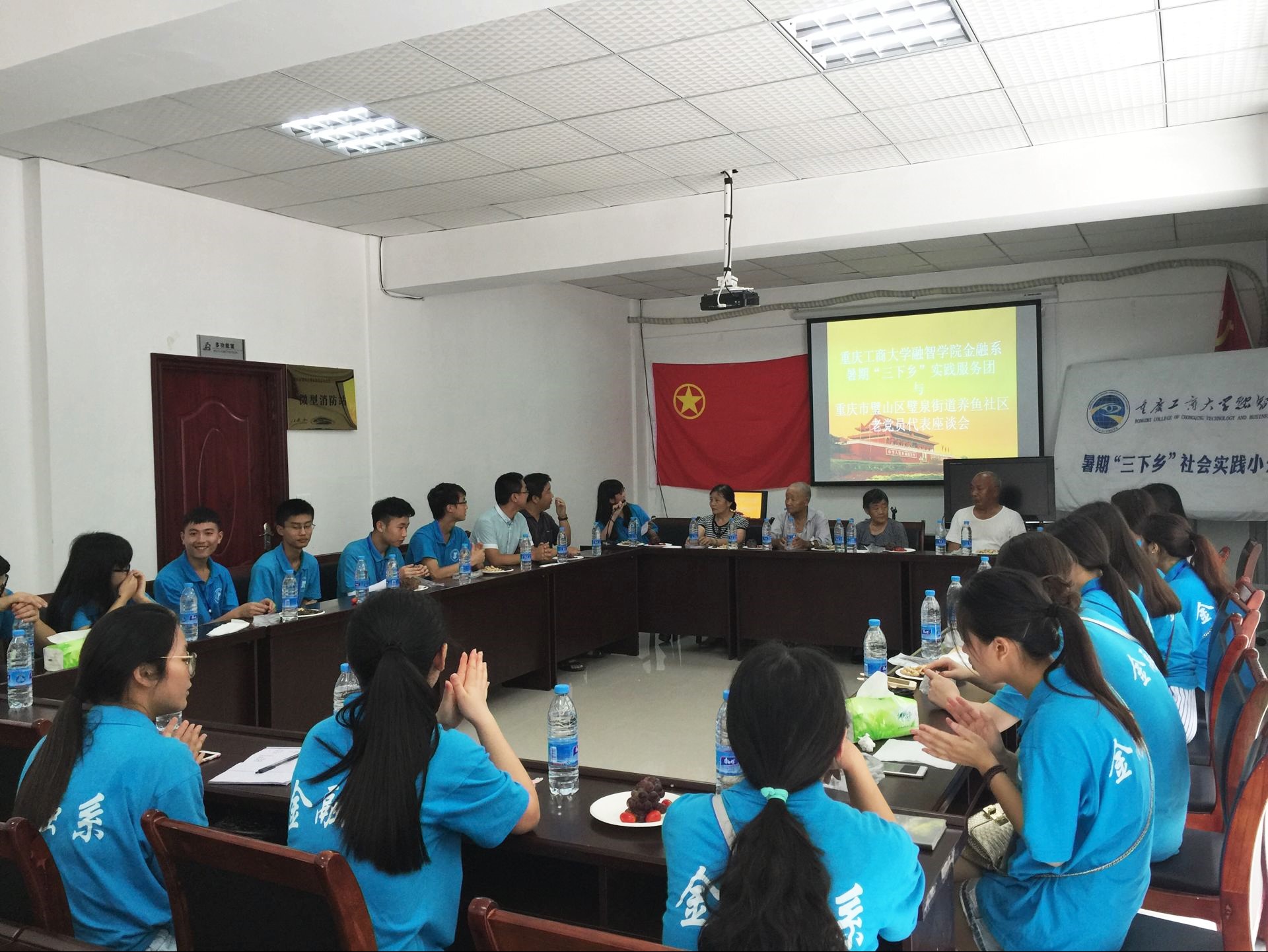 为认真学习贯彻习近平总书记系列重要讲话精神,特别是关心关爱留守儿童和孤寡老人的指示要求,社会实践服务团在养鱼社区开展了关心关爱孤寡老人和留守儿童的活动。服务团成员们通过入户与他们进行亲切交流,倾听他们的心声,关注他们生活中的难题,了解他们的社会福利情况。奔赴最底层,感悟时代发展,凝聚奋进力量。习近平总书记在全国老干部工作先进集体和先进工作者表彰大会中指出,学习老干部就是学习党的优良传统和作风。而在今天的交流活动中,一名参加过抗日战争的革命老兵挺直的坐在讲台上,颤抖的双手紧握话筒,湿润的眼睛坚定的看着在座的每一位志愿者,呜咽的声音述说着过去那段艰苦的岁月。苦尽甘来,通过老党员的发言,大家认识到要做到克难攻坚在前,享受享乐在后,当社会、学校需要的时候,永远冲锋在前,吃苦在前,吃亏在前。同时,老党员同志还讲到在改革开放前后他们生活上的改变,感悟在党中央领导下的新时期的人民生活。三十八年的改革开放,科学发展,成就璧山辉煌。通过本次交流活动,我们的社会实践活动更加深入开展,传达出了在党中央领导下的基层民生建设。