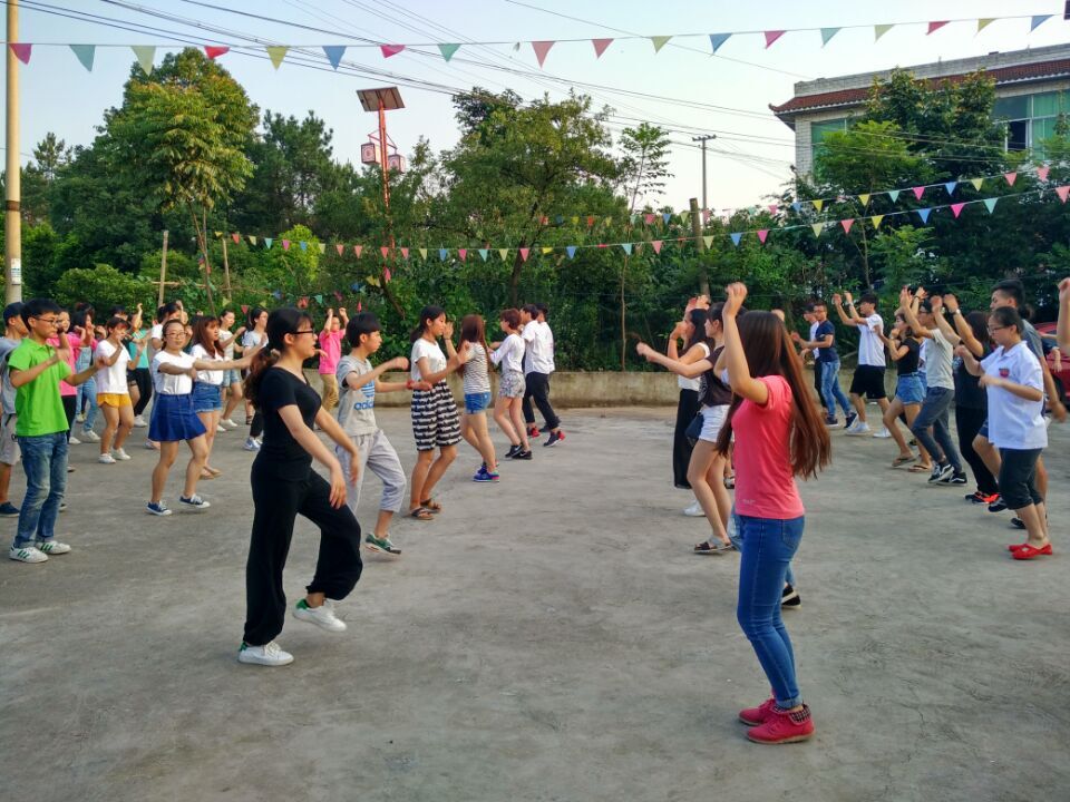 盛夏的巴蜀,傍晚的闷热丝毫难挡大家跳“坝坝舞”的热情,近百人组成的舞队,在团委指导老师李刚的带领下,欢快地跳着时下流行的健身舞步。伴随着《小苹果》、《咋了爸爸》等一系列神曲的响起,社会实践团队成员用他们绝对年轻的姿态,绝对积极的态度,加上绝对精彩的舞姿,将学院的青春气息播撒在天坪山的每一个角落。动感的节奏瞬间引爆全场,吸引了当地很多村民前来围观并加入其中。夕阳余晖下,洗去一天的忙碌,大家聚集在一起载歌载舞,一片和谐。休息间隙,社会实践团队成员排练了合唱歌曲《没有共产党就没有新中国》,以此致敬党的95岁生日。