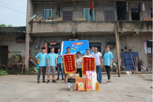 王老师和6位志愿者在龙山村村委会党员刘老师的指引下,来到该村邓爷爷家,邓爷爷一家三兄弟各有残疾、无子女,仅靠国家补贴生活。志愿者们询问了他们的生活状况并为送去了生活所需的物品,邓爷爷热情的招待了志愿者。志愿者们临走之际,行动不便的爷爷为表示感谢坚持站着和志愿者拍照留念,给志愿者们留下了深刻的感触。从这样的活动中,志愿者收获良多,走进了真正的农村,看见了更明白肩上的责任和重担,为本次实践活动添上了动力和热情。
