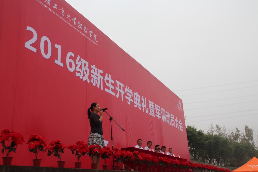 开学典礼在庄严肃穆的国歌声中正式拉开帷幕,丁书记首先宣读了《重庆工商大学融智学院关于给予黄园园等5名新生入学奖的决定》,向五位获奖的同学表示热烈的祝贺,学校领导们随即向他们进行了颁奖,并予以勉励。接着,学校老生代表——商务学院吴琴、新生代表——16级管理工程学院蒙雨琪分别上台讲话,向关心自己成长成才的学校领导表示由衷感谢,向16级新生致以鞭策和鼓励。随后,学校教师代表——重庆市中青年骨干教师董昕进行了发言,作为教师代表向全体新生表达了诚挚的欢迎和美好的期许。