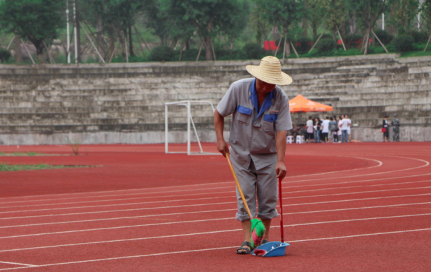 他们是一群埋头苦干、沉默不语的清洁工人,每天行走在校园中,清扫操场,清理脏物,风吹日晒,雷打不动,恪尽职守。有了他们同学们累时才能在操场上毫无顾忌地席地而坐,有了他们我们才拥有一个干净美丽的训练场,因为有了他们,融智学院才愈发整洁美丽。
