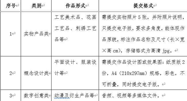 (2)作品类型(包括但不限于下表所列内容)及提交格式: