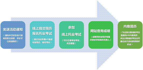 托业考试成绩在650分(满分990分)以上者,“智联招聘”提供10家合作企业,为达到分数线的考生直接向对应企业HR通过内推方式推送简历。