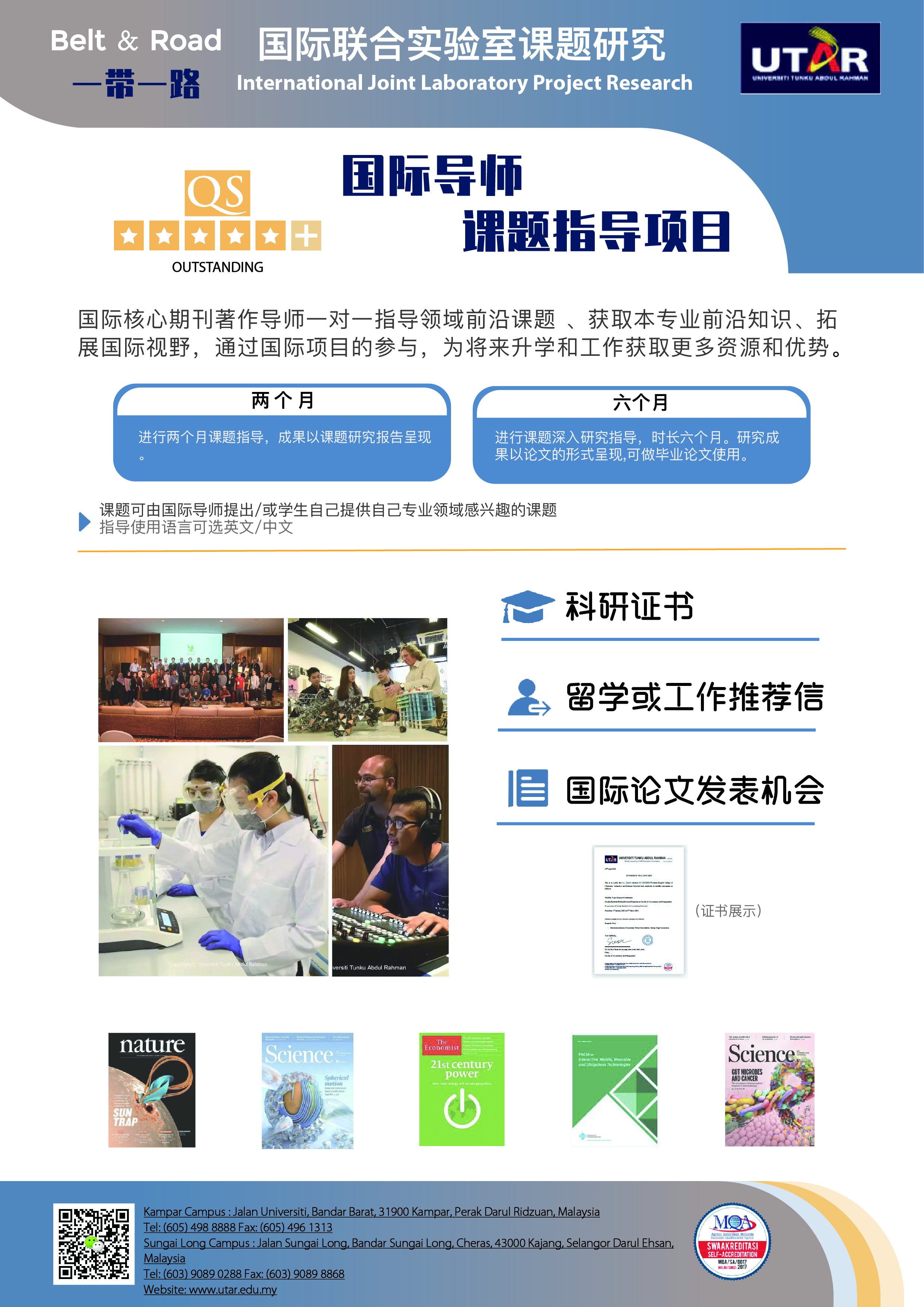为拓宽我校学生国际视野,提升其英语水平、科学研究能力和学术论文撰写能力,我校与马来西亚拉曼大学计划联合举办“第三期学生科研能力国际培优班”。具体事宜安排如下: