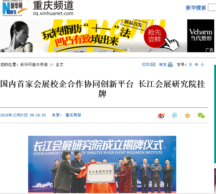 人民网12月8日讯(记者:高缘 谭钰欣)近日,长江会展研究院授牌仪式在重庆工商大学融智学院隆重举行。为全国首家由企业与高校共同组建的会展产学研协作创新平台,长江会展研究院是由重庆国际博览中心有限公司与重庆工商大学融智学院,共同组建的会展专业科研服务咨询机构。