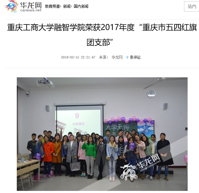 华龙网5月15日20时30分讯(刘雅丽)近日,重庆市2017年度“两红”“两优”名单公布,重庆工商大学融智学院商务学院2015级会展经济与管理二班团支部获得2017年度“重庆市五四红旗团支部”,据悉,全市共25个团支部获奖,其中有8所高校团支部获奖,这是该校建校以来首次获此殊荣。