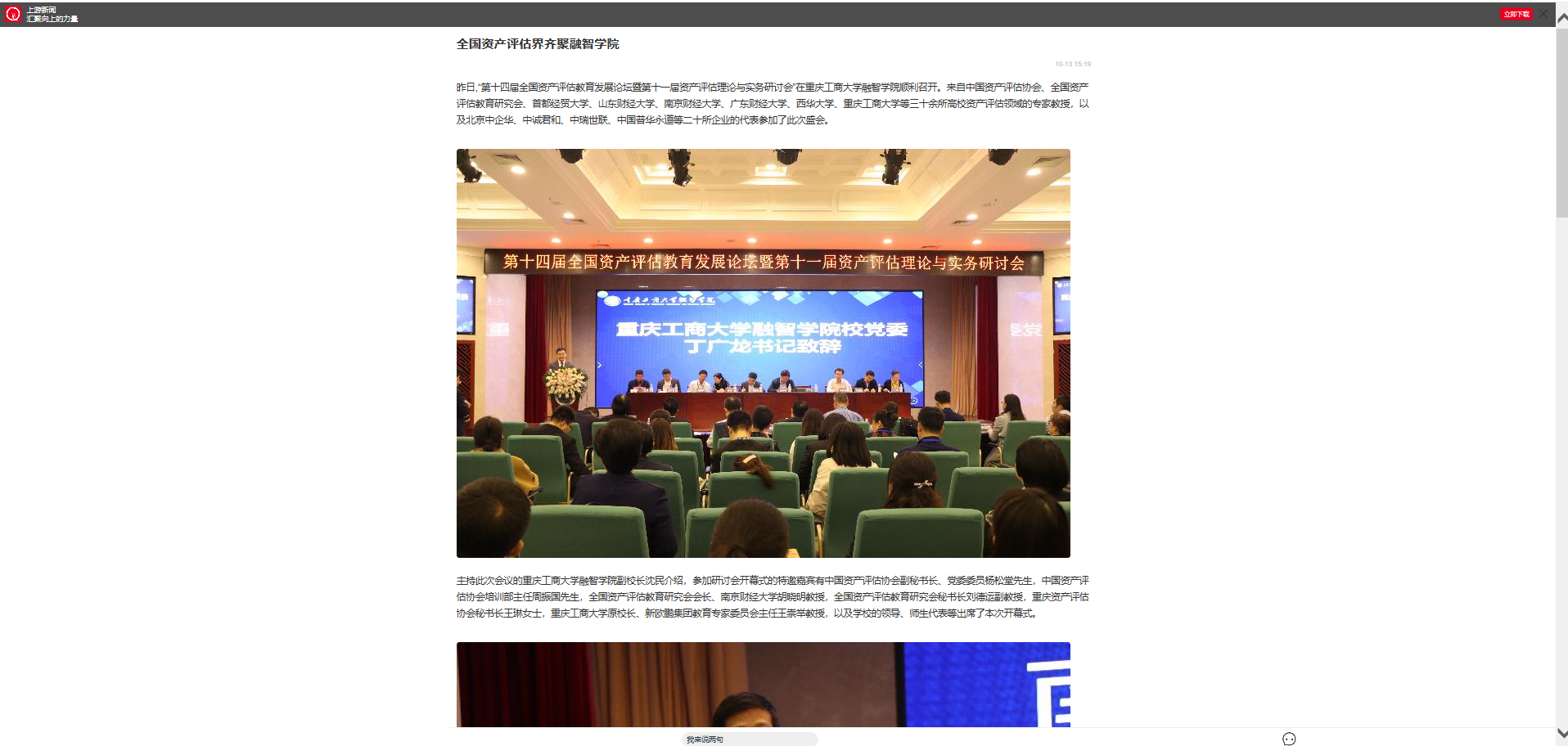重庆工商大学融智学院党委书记丁广龙表示,此次研讨会由中国资产评估协会指导、全国资产评估教育研究会主办、重庆工商大学融智学院承办、重庆市资产评估协会协办,旨在通过搭建平台推进资产评估教育、理论与实务的发展。
