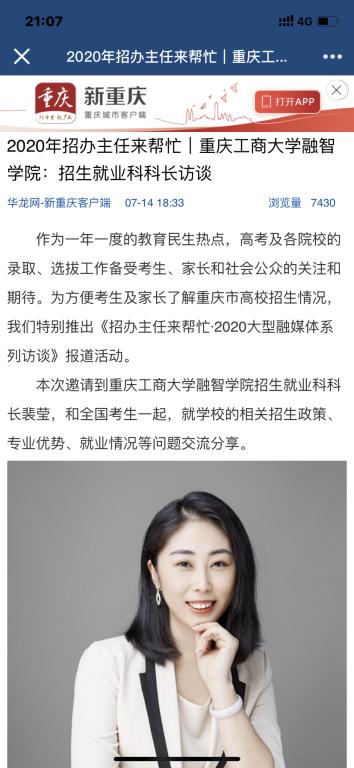本次邀请到重庆工商大学融智学院澳门新葡京博彩科科长裴莹,和全国考生一起,就学校的相关招生政策、专业优势、就业情况等问题交流分享。